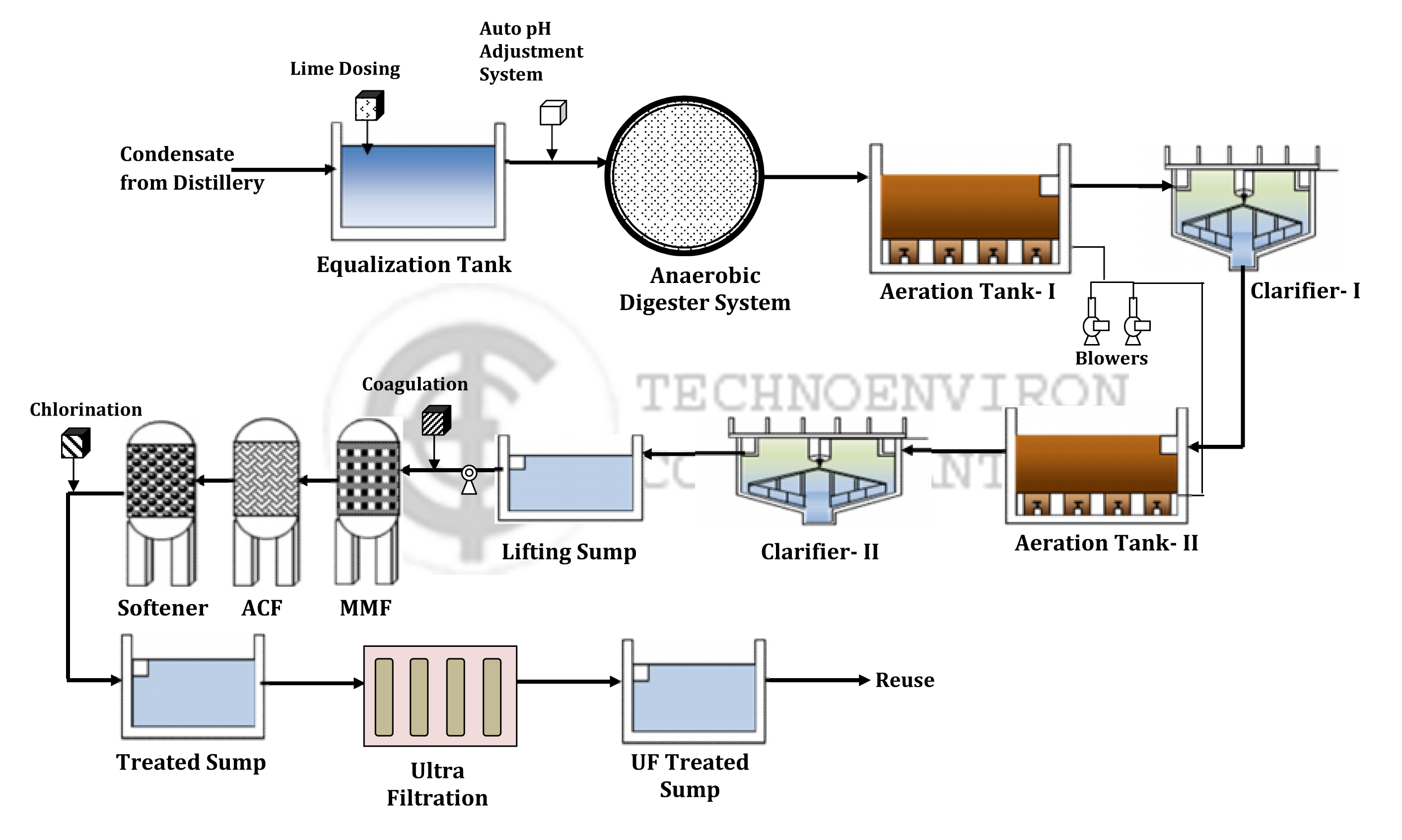With the growing awareness of achieving zero discharge, that too with 100% recycle of the partially polluted wastewater streams. Condensate polishing units have come into existence in the distillery industry, for treating condensates evolved in the main treatment scheme for Spent wash Treatment. Development of Biological Treatment and successful performance of the same for over 10 years is a milestone in the development of the technology evolved after years of continuous monitoring and up gradation in this industry.